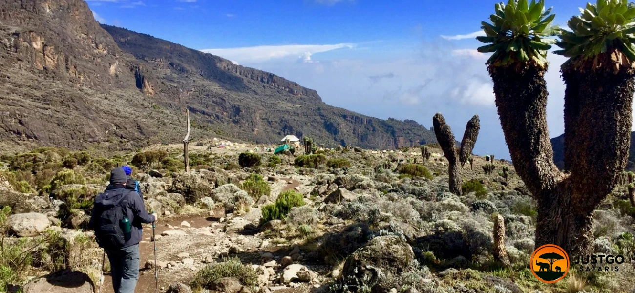 After breakfast at Shira 2 Camp, begin a key acclimatization day on Mount Kilimanjaro. The trail gradually ascends through the alpine desert zone toward Lava Tower, providing a high-altitude stop for lunch and essential acclimatization.